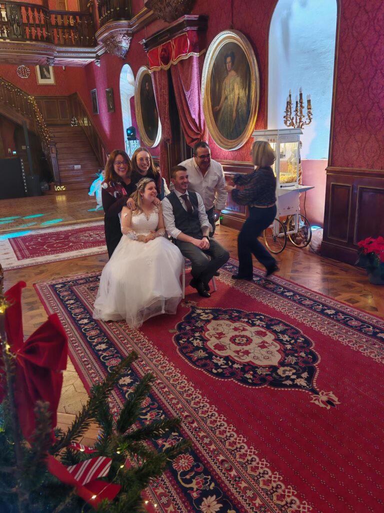 Envie d’une ambiance encore plus fun ? Je propose plusieurs options pour dynamiser votre mariage comme une machine à popcorn pour régaler vos invités, un photobooth avec accessoires pour des photos délirantes, et même la projection de votre diaporama grâce à un vidéoprojecteur.